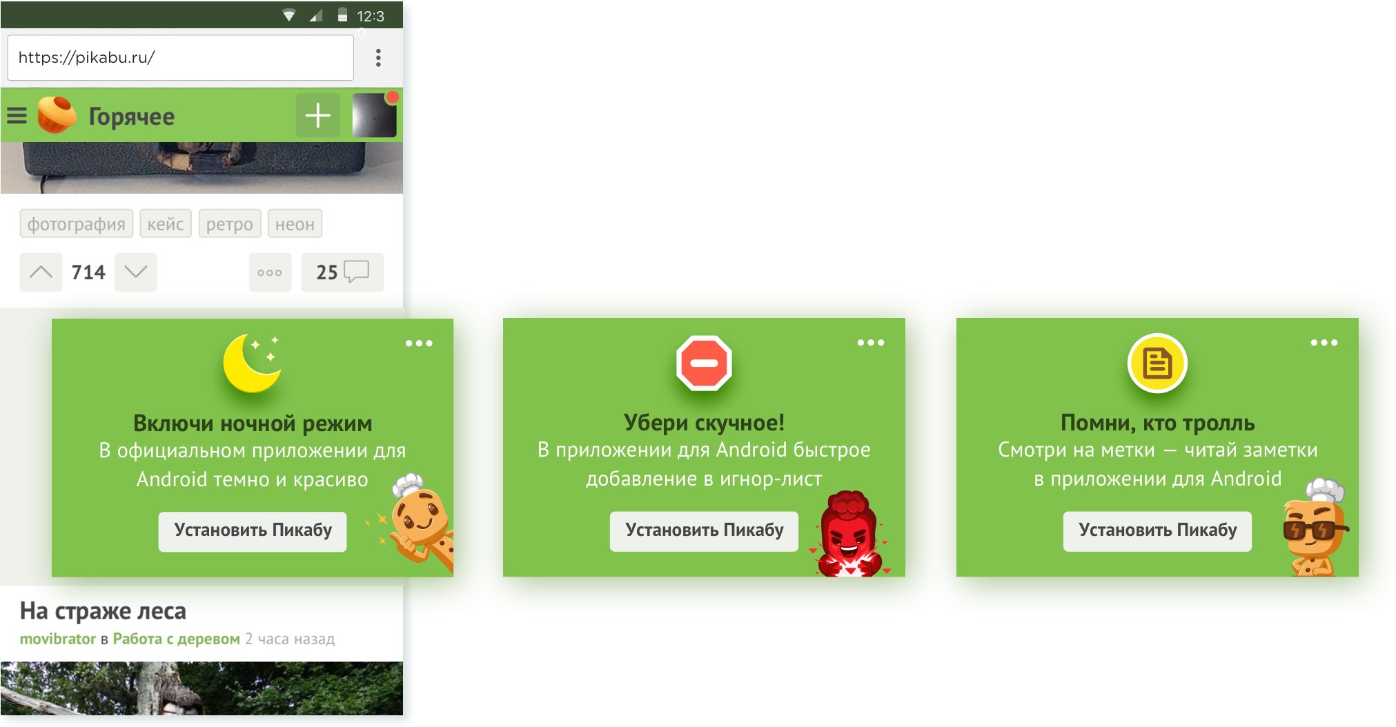 Мобильное приложение даёт больше возможностей для удобства чтения, чем мобильная версия сайта. Теперь о них мы расскажем посетителям сайта в надежде, что они выберут мобильный продукт и вовлекутся в нашу мобильную экосистему Пикабу.
